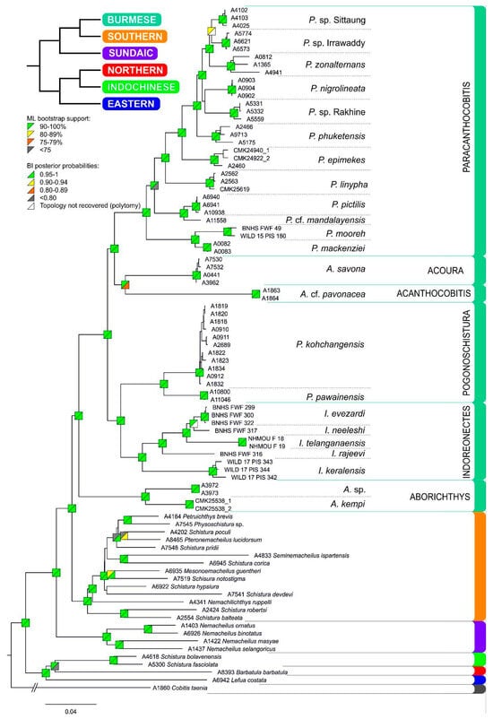 A recent phylogenetic reconstruction based on molecular genetic data revealed the presence of six well-supported clades within the freshwater fish family Nemacheilidae (Burmese, Eastern, Indochinese, Northern, Southern and Sundaic Clade). Species with the present generic name Schistura were found in three of the