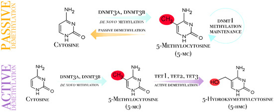 DNA methylation is a key epigenetic modification that regulates gene expression and maintains genome stability, particularly in mammalian reproductive tissues. This review summarizes the current knowledge of DNA methylation and demethylation fluctuations with a specific focus on the regulation of ovarian development and uterine function during pregnancy. This modification primarily occurs at CpG-rich regions and is catalyzed by DNA methyltransferases (DNMTs): DNMT1 maintains existing patterns during replication, while DNMT3A and DNMT3B establish de novo methylation. Demethylation is mediated by ten-eleven translocation enzymes (TET1, TET2, and TET3), which oxidize 5-methylcytosine, ultimately replacing it with unmethylated cytosine. These processes play essential roles in folliculogenesis, oocyte maturation, steroidogenesis, and tissue-specific gene regulation. Understanding these epigenetic mechanisms provides important insights into veterinary medicine and offers potential applications in fertility preservation across diverse mammalian species. Consequently, further research is essential to elucidate the clinical implications of these epigenetic processes for improving reproductive health outcomes in animals.
