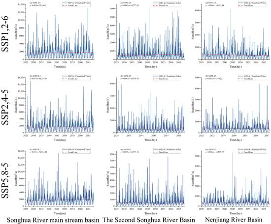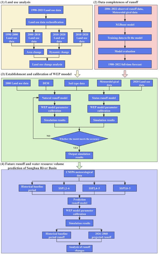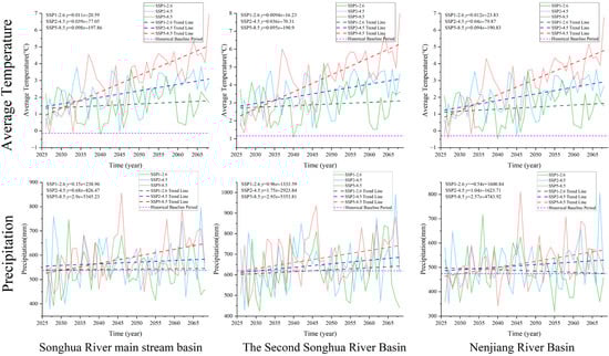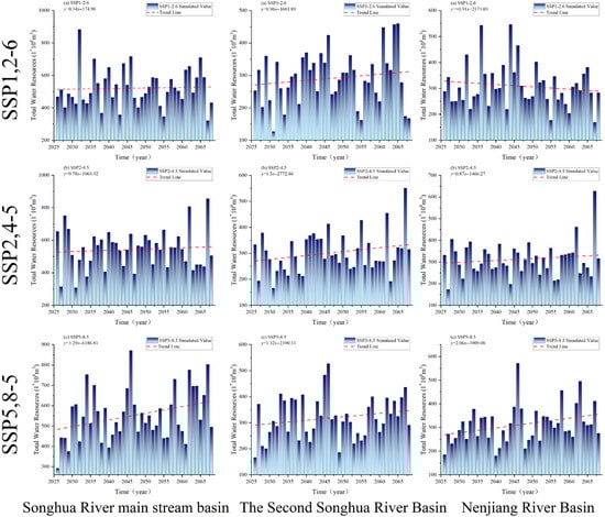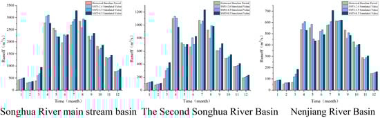 Songhua River Basin, northeast China, has seen significant changes due to climate change and human activities from 1990 to 2000, when forests were largely reclaimed and agricultural land was taken up to change the terrestrial water cycle drastically. This paper investigates hydrological changes in three basins: the main stream basin of the Songhua River, the Second Songhua River Basin, and the Nenjiang River Basin. Machine learning and signal processing techniques have been applied to reconstruct historical river records with high accuracy, achieving determination coefficients exceeding 0.97. The physically based WEP model effectively simulates both natural hydrological patterns and human-induced hydrological processes in the northern Nenjiang region. Climate projections indicate clear temperature increases across all scenarios. The most significant warming is observed under the SSP5-8.5 scenario, where runoff increases by 8.52% to 12.02%t, with precipitation driving 62% to 78% of the changes. Summer runoff shows the most significant increase, while autumn runoff decreases, particularly in the Nenjiang Basin, where permafrost loss alters spring melt patterns. This change elevates flood risk in summer, with the rate of increase strongly dependent on the scenario. Water resources show strong scenario dependence, with the average growth rate of SSP5-8.5 being 4 times that of SSP1-2.6. A critical threshold is reached at a 2.5 °C increase in temperature, triggering system instability. These results emphasize the need for adaptation to spatial differences to address emerging water security challenges in rapidly changing northern regions, including nonlinear hydroclimatic responses, infrastructure resilience to flow changes, and cross-basin coordination.