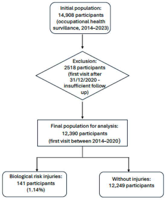 Healthcare workers, particularly those in training, face significant exposure to biological risks, including needlestick and sharps injuries, which remain a critical occupational hazard. This study examines the incidence and nature of such injuries among young healthcare trainees at the University of Campania “L.Vanvitelli,” with the aim of providing useful information for designing an effective preventive program. From 2014 to 2023, a study population of 14,908 health students was subject to health surveillance, of which 141 workers suffered an occupational injury. Needlestick injuries were most common (67.4%). Surgical residents were the most affected subgroup (24.8%). Injuries occurred more frequently after the first year of training (74.5%). Multivariate logistic regression showed significantly higher odds of injury for nursing students (OR = 8.673; 95% CI: 3.196–35.634) and residents (OR = 50.726; 95% CI: 17.789–214.279) compared to medical students. The findings underscore the urgent need for enhanced risk management strategies, targeted education programs, and stricter adherence to safety regulations to protect this vulnerable population.