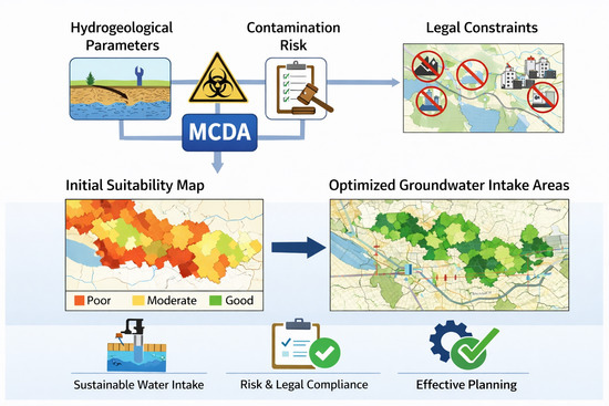 This study presents a comprehensive GIS-based multicriteria decision analysis (MCDA) framework for identifying prospective groundwater abstraction sites in a 9 municipality region of South-East Poland (Podkarpackie Voivodeship), covering approximately 830 km2. The analysis integrated hydrogeological parameters (aquifer thickness, quality, productivity, water