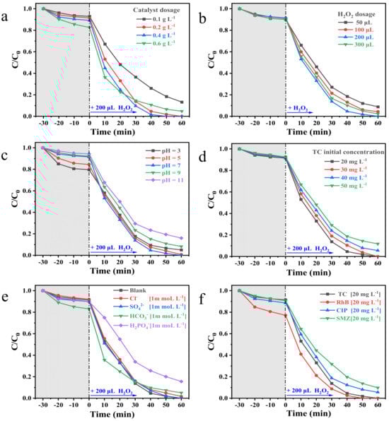 Photo-Fenton technology is considered an effective method for removing organic pollutants from water. In this work, a novel Mn-doped FeWO4 (Mn-FeWO4) photocatalyst was synthesized via a one-step hydrothermal method and applied for the photo-Fenton degradation of tetracycline (TC). The optimal