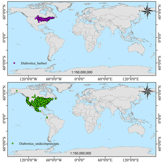 Corn rootworms of Diabrotica virgifera virgifera Le Conte, 1868; Diabrotica undecimpunctata howardi Barber, 1947, and Diabrotica barberi R.F. Smith & Lawrence, 1967 are important pests of corn crops that natively occur in America and have a potential risk of spreading into China through