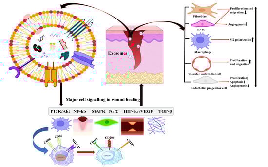 Diabetic wounds remain chronically non-healing due to impaired angiogenesis, persistent inflammation, and defective extracellular matrix remodelling. In recent years, stem cell-derived exosomes have emerged as a potent cell-free regenerative strategy capable of recapitulating the therapeutic benefits of mesenchymal stem cells while avoiding risks