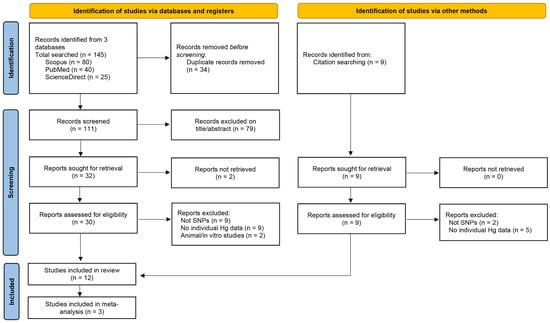 Genetic polymorphisms can modulate susceptibility to mercury (Hg) toxicity by altering metabolic and detoxification pathways. This review evaluated the association between genetic variants, Hg exposure, and obstetric outcomes. A systematic search of Scopus, PubMed and ScienceDirect through May 2025 identified 12 eligible studies