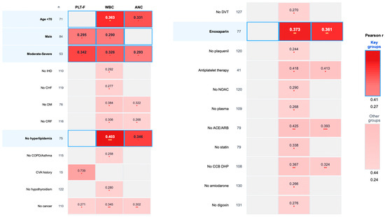 Although COVID-19 is associated with significant thrombo-inflammatory complications, reliable biomarkers to guide antithrombotic therapy remain limited. Immature platelet fraction (IPF) reflects platelet turnover and may indicate heightened thrombotic risk. We retrospectively analyzed 133 hospitalized COVID-19 patients (median age 68 years) at a single center. IPF and inflammatory markers (WBC, ANC, D-dimer, LDH, CRP) were measured on admission. Correlations between IPF and these biomarkers were assessed overall and in clinical subgroups (age, sex, disease severity, comorbidities, and treatment). We found that IPF was positively correlated with WBC and ANC in patients less than 70 years old (r = 0.36 and 0.33, respectively; p < 0.05), males, and those with moderate-to-severe disease. Among patients with congestive heart failure, IPF correlated strongly with D-dimer (r = 0.78, p = 0.013). Similar associations were observed in patients requiring enoxaparin or antiplatelet therapy. No significant correlations were found in patients age 70 or older. Based on these findings, we conclude that elevated IPF is associated with increased inflammatory and thrombotic activity in hospitalized COVID-19 patients, especially in younger, male, and more severe cases. These findings suggest IPF may serve as a dynamic marker for thrombo-inflammation and help identify patients who might benefit from more intensive antithrombotic therapy. Larger studies are warranted to validate IPF as a biomarker for personalized management of COVID-19.