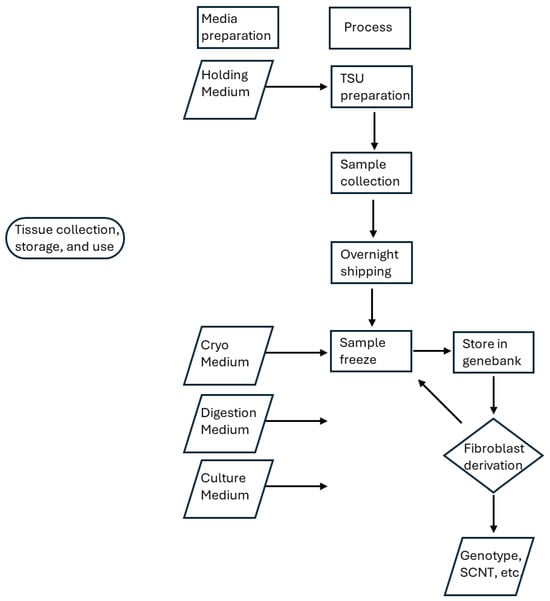 Dermal tissue samples are a rich source of germplasm because they can be readily collected, frozen as part of a genebank collection, digested and cultured, and used for a variety of purposes such as genotyping or other forms of genetic research. Derived fibroblasts