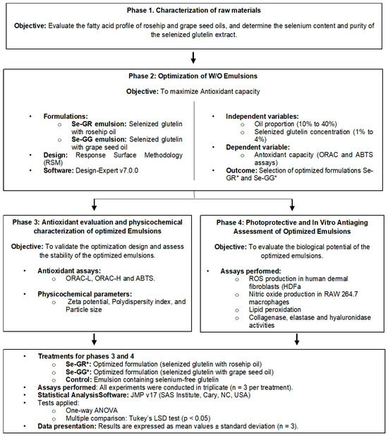 Antioxidant, Photoprotective, and In Vitro Antiaging Assessment of Optimized Water/Oil Emulsions of Selenized Chickpea Glutelin with Rosehip Oil or Grapeseed Oil