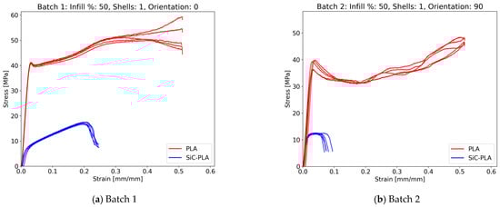 Fused Filament Fabrication (FFF) is an additive manufacturing technique that constructs parts by extruding material layer by layer. It offers advantages such as rapid prototyping, cost-effectiveness, and the ability to produce complex geometries. This study investigates the mechanical behavior of a composite filament composed of silicon carbide (SiC) ceramic particulates embedded in a polylactic acid (PLA) matrix, fabricated via FFF. Pure PLA specimens were also printed and tested to serve as a baseline. A Design of Experiments (DOE) methodology was employed to evaluate the influence of key printing parameters on mechanical properties, including Young’s modulus, yield strength, and ultimate strength. Microstructural analysis was performed on printed specimens using scanning electron microscopy (SEM). For compression testing, the parameters studied were infill percentage, number of shells, and print orientation. For tensile testing, the parameters included layer height, number of shells, and infill angle. Results indicated that infill percentage had the most significant impact on compressive properties, while layer height was the dominant factor in tensile performance. These findings provide insights into optimizing FFF process parameters for ceramic-particulate-reinforced polymer composites.
