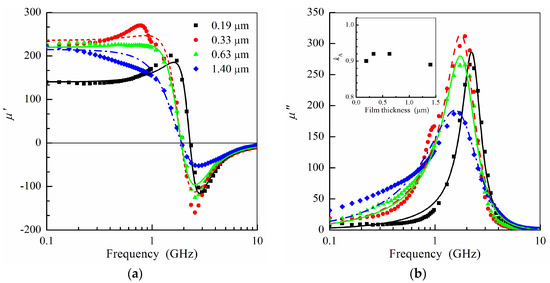 Microwave permeability of amorphous Co67Fe7B26 films deposited on a flexible substrate was studied in a wide range of film thicknesses up to 1.40 μm. Microwave permeability measurements were carried out using the coaxial technique in the frequency range