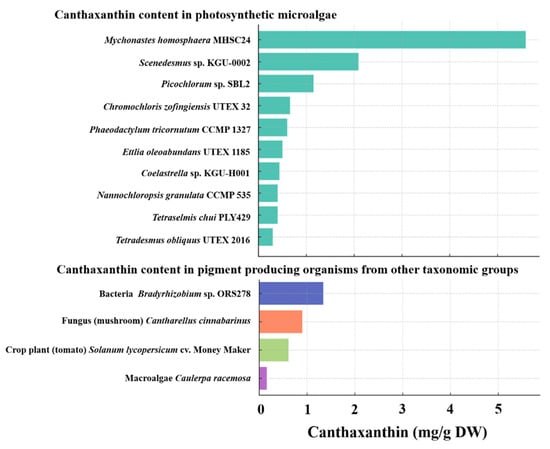 Mychonastes homosphaera MHSC24 is a green microalga newly isolated from a brackish coastal site in Korea. This study represents the first indigenous record of this species in the country. It provides a comprehensive characterization of its morphological, molecular, physiological, and biochemical characteristics. This microalga was identified through morphological observations and multilocus phylogenetic analyses. Strain MHSC24 exhibited robust growth under mesophilic temperatures (15–27 °C), moderate light intensities (88–300 μmol photons m−2 s−1), and low salinity levels (0–10 PSU). Optimal growth was observed at 27 °C, 193 μmol photons m−2 s−1, and 0 PSU. Under standard cultivation, the strain exhibited high protein levels (~54% of dry weight, DW) and accumulated substantial amounts of canthaxanthin (5.59 mg g−1 DW), the predominant carotenoid in its pigment profile. Thus, MHSC24 is a promising candidate for sustainable protein- and carotenoid-based applications. Palmitic acid (11.95 mg g−1 DW) and galactose (2.07 mg g−1 DW) were the predominant fatty acid and monosaccharide, respectively. The physiological resilience, high protein yield, and substantial canthaxanthin accumulation of MHSC24 support its potential utilization in the functional food, feed, and nutraceutical sectors. Therefore, this study provides a basis for optimized cultivation strategies and industrial exploitation of indigenous Korean microalgae.