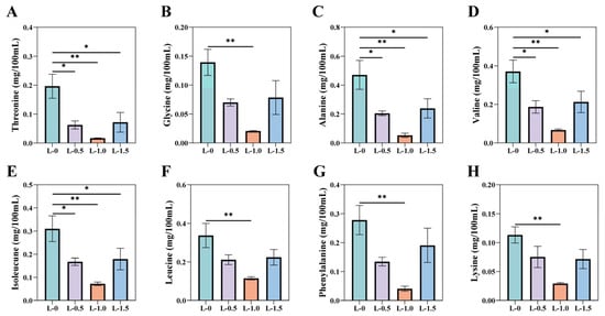 This experiment investigated the effects of rumen-protected leucine (RP-Leu) supplementation on growth performance, rumen fermentation parameters, and rumen microbiota of fattening sheep. Forty fattening sheep (19.03 ± 0.38 kg) were randomly divided into four groups. The four groups were fed the basal diet supplemented with RP-Leu at 0 (L-0), 0.5 (L-0.5), 1.0 (L-1.0), or 1.5 (L-1.5) g/d. The experimental period lasted 67 d. The results demonstrated that compared with the L-0 group, the L-1.0 and L-1.5 groups significantly increased the average daily gain (ADG) by 22.2% and 18.0%, respectively (p < 0.05), and reduced the feed-to-gain ratio (F:G ratio) by 20.0% and 13.4% (p < 0.05); the L-1.5 group significantly increased the concentrations of propionate and isovalerate (p < 0.05) and significantly decreased the acetate to propionate ratio (A:P) by 25.7% (p < 0.05); and the L-1.0 group significantly decreased the concentrations of free branched-chain amino acids (BCAAs) in rumen (p < 0.05). A microbiota analysis showed that RP-Leu enriched the abundance of fiber-degrading bacteria. A correlation analysis showed that acetic acid and A:P were positively correlated with norank_f_F082 and norank_f_UCG-011 (p < 0.05). Phenylalanine, isoleucine, valine, and leucine were negatively correlated with norank_o_Bacteroidales (p < 0.05). In conclusion, RP-Leu improved the growth performance of fattening sheep by changing the rumen fermentation parameters and patterns; the optimal supplementation level is 1.0 g/d.