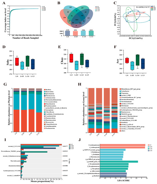 This experiment investigated the effects of rumen-protected leucine (RP-Leu) supplementation on growth performance, rumen fermentation parameters, and rumen microbiota of fattening sheep. Forty fattening sheep (19.03 ± 0.38 kg) were randomly divided into four groups. The four groups were fed the basal diet