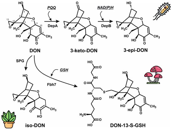 Deoxynivalenol (DON) is a trichothecene mycotoxin produced by Fusarium species that frequently contaminates cereal crops, representing a major threat to food safety, public health, and agricultural productivity. Its remarkable chemical stability during food processing presents significant challenges for effective detoxification. Among the available
