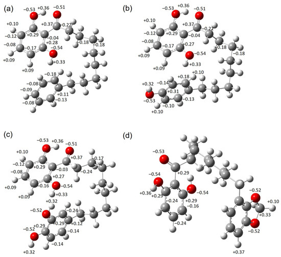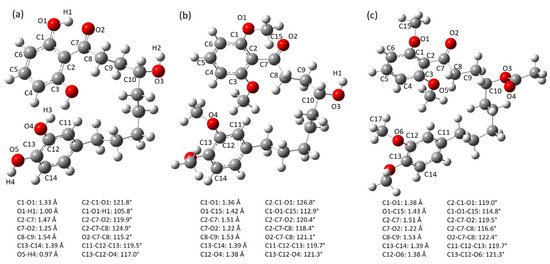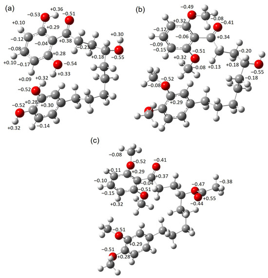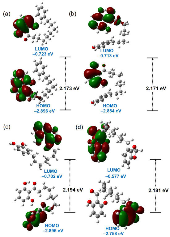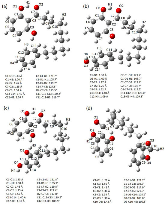 A phytochemical investigation of Myristica ceylanica resulted in the identification of seven arylalkanone-derived phenolic compounds, comprising one new naturally occurring arylalkanone (A), two derivatives (A1 and A2) prepared by chemical synthesis, and four known malabaricones (B–E). Density functional theory (DFT) calculations were conducted to evaluate the geometries, electronic properties, and charge distributions of the newly identified arylalkanone and its derivatives and to compare them with those of malabaricones B–E. The arylalkanones exhibited geometrical features comparable to those of the malabaricones, whereas frontier molecular orbital analysis revealed similar HOMO–LUMO energy gaps for the malabaricones but a progressive widening of the gap among the arylalkanone derivatives, indicating enhanced electronic stabilisation. Mulliken population analysis identified oxygen atoms as the principal electron-rich sites in both series, with arylalkanones displaying greater charge polarisation and increased sensitivity to structural substitution.