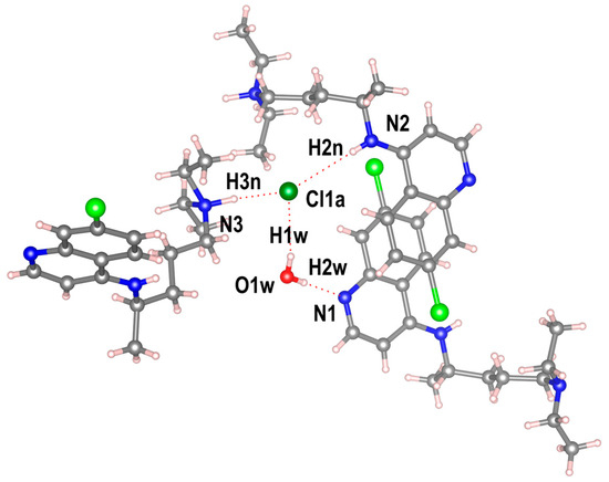 We report the crystallization and single-crystal X-ray analysis of the monohydrate hydrochloride salt of chloroquine(CQ), abbreviated CQHCl·H2O, an antimalarial drug with the formula C18H26ClN3. The crystal structure reveals a well-defined supramolecular architecture stabilized by