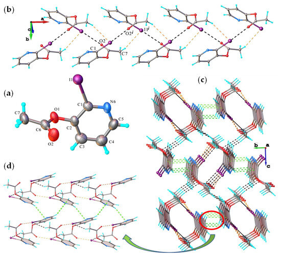The title compound 2-iodopyridin-3-yl acetate was obtained by acetylation of the OH group of 2-iodo-3-hydroxypyridine. Knowing that the hydroxyl group, as a strong H-bond donor in halogenated hydroxypyridines, usually directs supramolecular packing and might enforce possible halogen–halogen contacts, we crystallized 2-iodo-3-acetoxypyridine with the aim of disrupting the most important H-bond donor and assessing the propensity of the iodine for halogen bond formation. Indeed, in the compound 2-iodopyridin-3-yl acetate, the crystal packing is characterized by infinite 3D chains bonded through I···O=C and C-H···I contacts between adjacent molecules. These chains are interconnected by weak C-H···O contacts, implying the presence of oxygen in the ester. The I···H contact with the C-H axis perpendicular to the electron belt of the iodine atom can enhance the σ-hole of the iodine and act cooperatively in crystal cohesion. No halogen–halogen contacts were present.