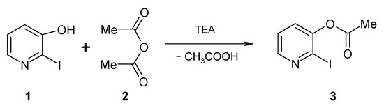 The title compound 2-iodopyridin-3-yl acetate was obtained by acetylation of the OH group of 2-iodo-3-hydroxypyridine. Knowing that the hydroxyl group, as a strong H-bond donor in halogenated hydroxypyridines, usually directs supramolecular packing and might enforce possible halogen–halogen contacts, we crystallized 2-iodo-3-acetoxypyridine with the