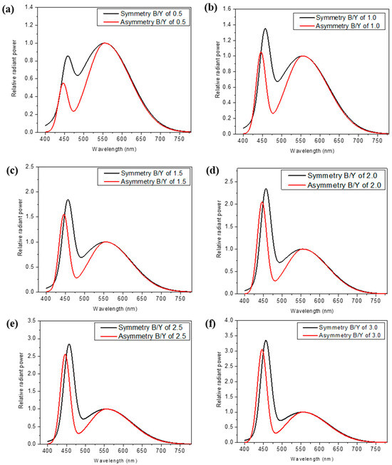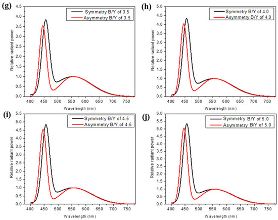 An efficient method for evaluating the spectral irradiance properties of the white light of white LEDs is conducted. The method includes two main steps. The first step is to build up spectral irradiance modeling for the blue and yellow emission bands. The photometric parameter of the spectral irradiance of white light which is generated by yellow and blue light mixing is determined based on the photometry and colorimetry theories. The correlated color temperature value strongly depends on the power ratios of blue and yellow light. In addition, the result indicates that the emission bandwidth of yellow phosphor is also an important factor for increasing the color performance of output light. The selection of material with a broader bandwidth of yellow light can control a slower variation in color property compared to the case of using a material with a narrower bandwidth. In addition, the blue light hazard ratio of the spectral irradiance of white light can be extracted, which is helpful for designing the white light with moderate blue and yellow power ratios before fabricating the white LEDs product.