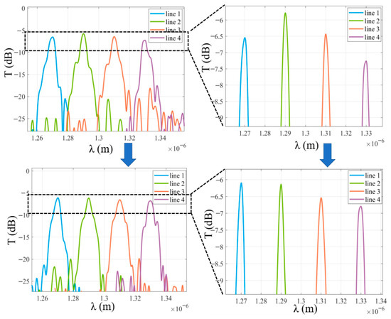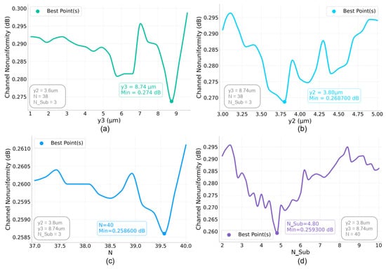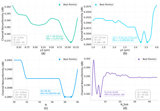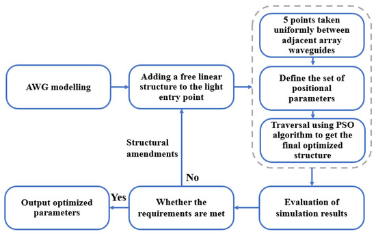 In order to further mitigate the channel non-uniformity at the junction between the input slab and the arrayed waveguide grating in traditional AWG structures, we design a highly flexible, structurally adaptive linear auxiliary waveguide. Through systematic parameter scanning utilizing the Particle Swarm Optimization