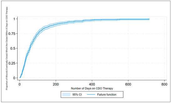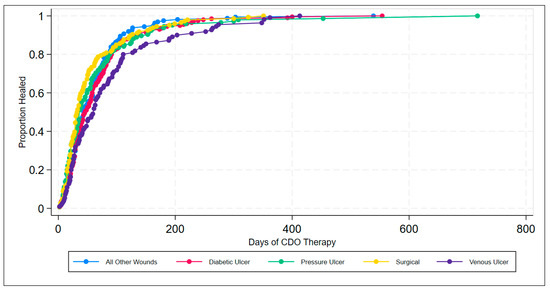The purpose of this analysis is to report on the clinical efficacy of Continuous Diffusion of Oxygen (CDO) therapy in real-world clinical practice and compare those results to data published in controlled clinical studies. For the real-world clinical results, a Prospective Patients Database (PPD) of 764 patients treated using CDO therapy in a broad range of clinical practices across a wide range of wound types and wound locations was analyzed. The objectives included analyzing the clinical efficacy of CDO therapy across multiple wound types and anatomical locations, testing the data for robustness, and comparing the efficacy to results from controlled clinical studies for CDO and NPWT. The PPD data is also analyzed for efficacy among the sexes and by age for older patients in the Medicare population. The robustness of the PPD data is tested using various non- and semi-parametric statistical tools, including the Kaplan–Meier and Cox proportional hazard (PH) models, among others. The results show that CDO therapy is highly efficacious with an average healing success rate of 76.3% in real-world application, ranging from 71.2% to 84.1% for different wound types. The Medicare age population had an average age of 78 years old and similar healing rates to the overall population, with slightly better results for pressure ulcers in the older patient population. The PPD data proved to be extremely robust in every test method, demonstrating substantially equivalent efficacy in various wound types and locations, as well as between men and women. The PPD results for CDO compared favorably to clinical trial results for CDO and NPWT. Both clinical trial and PPD data for CDO exhibited better healing rates when compared to NPWT. Kaplan–Meier analysis shows that CDO use in clinical practice has 79.2% full closure in 112 days, as compared to NPWT, which has 43.2% full closure in the same timeframe for similar wound sizes and severity. These results demonstrate not only that CDO is highly efficacious in clinical practice, but that the efficacy is also similar across all wound types and locations in the body. CDO also compares very favorably to NPWT.