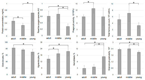 Despite the economic importance of Mizuhopecten yessoensis, little is known about their parasites and immunity. This study, the first to examine the prevalence and intensity of Perkinsus across three age groups of scallops from four locations in the Sea of Japan, revealed that the gills, mantle, and digestive glands of one-year-old specimens from mariculture farms are heavily colonized. The cases of infection were notably higher in older specimens (mostly hemolymph and shell), suggesting that they act as carriers of Perkinsus. An immunological analysis indicated that when the pathogen is found only in the hemolymph and mantle, there is an increase in plasma protein concentrations, which likely plays a crucial role in resisting infection. However, when hypnospores were present in the mantle and gills, a decrease in reactive oxygen species and granulocytes occurred, accompanied by an increase in hemoblasts and agranulocytes. Phagocytic activity increased only when the pathogen appeared in the digestive gland. This evidence highlights the heightened vulnerability of young scallops, emphasizing the necessity for preventive measures against infection. The current troubling epidemiological situation regarding scallop diseases in the region suggests a rise in epizootics, raising doubts about the sustainability of the scallop farming industry unless timely interventions are implemented.