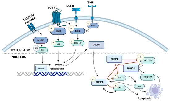 Colorectal cancer (CRC) remains one of the leading causes of cancer-related mortality worldwide, with its development closely linked to dysregulation of mitogen-activated protein kinase (MAPK) signaling pathways. Background: Dual-specificity phosphatases (DUSPs), as key regulators of MAPKs, play a crucial role in maintaining