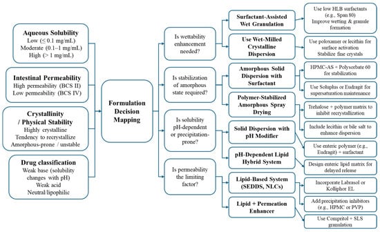 Background/Objectives: The poor aqueous solubility of many therapeutic compounds remains a key barrier to achieving optimal oral bioavailability. While traditional formulation strategies—such as surfactant-based solubilization, nanocrystals, and amorphous solid dispersions—have yielded varying degrees of success, they are often limited by poor physical stability,