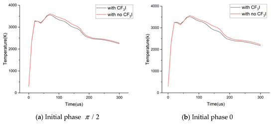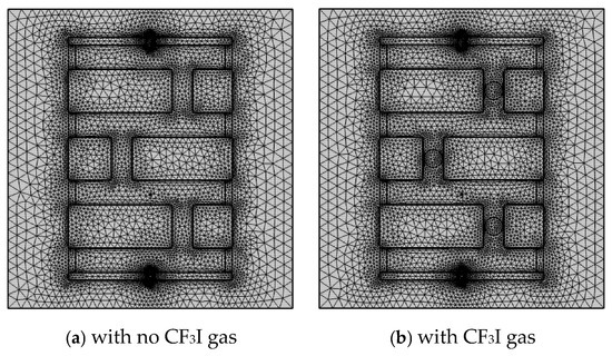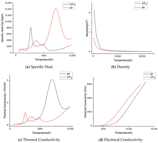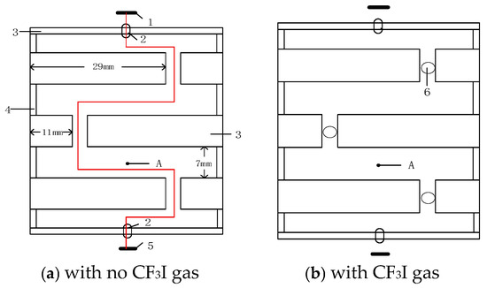 Plasma arcs generated by lightning strikes are prone to tripping distribution lines, especially 10 kV lines. To reduce the lightning-induced tripping rate of 10 kV distribution lines and ensure the safe operation of power systems, this paper proposes a same-level double-fracture lightning protection device containing the electronegative gas trifluoroiodomethane (CF3I). A mathematical model of the gas arc-extinguishing process is established based on magnetohydrodynamics. Meanwhile, the mechanism of CF3I in the arc-extinguishing process is analyzed according to its physical and chemical properties, and the arc-extinguishing process is simulated using COMSOL Multiphysics 6.0. The results show that (1) the arc-extinguishing effect is optimal when the horizontal distance of the compression pipeline of the device is 9 mm; (2) under the action of power frequency currents with different initial phases of π/2 and 0, the arc-extinguishing device can extinguish the arc within 800 without re-ignition; and (3) in the arc-extinguishing process involving CF3I, the arc can be extinguished within 710 , which is 11.2% quicker than that without CF3I. Meanwhile, CF3I can effectively reduce the arc temperature at the initial stage of arc extinguishing, avoiding damage caused by excessive internal compression of the device.