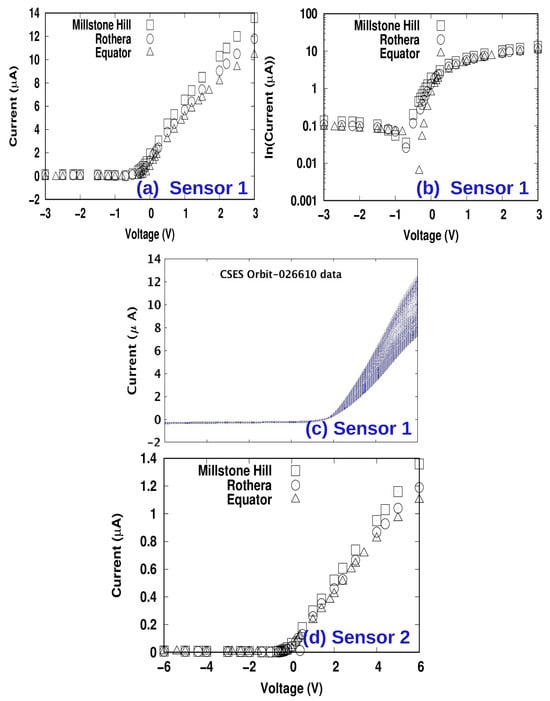We present three dimensional particle-in-cell simulations of current-voltage characteristics of the hemispherical Langmuir probe (LAP), onboard the China Seismo-Electromagnetic Satellite (CSES). Using realistic plasma parameters and background magnetic fields obtained from the International Reference Ionosphere (IRI) and International Geomagnetic Reference Field (IGRF) models, we simulate probe–plasma interactions at three locations: the equatorial region and two magnetically conjugate mid-latitude sites: Millstone Hill (Northern Hemisphere) and Rothera (Southern Hemisphere). The simulations, performed using the PTetra PIC code, incorporate realistic LAP geometry and spacecraft motion in the ionospheric plasma. Simulated current voltage characteristics or I–V curves are compared against in-situ LAP measurements from CSES Orbit-026610, with Pearson’s correlation coefficients used to assess agreement. Our findings indicate how plasma temperature, density, and magnetization affect sheath structure and probe floating potential. The study highlights the significance of kinetic modeling in enhancing diagnostic accuracy, particularly in variable sheath regimes where classic analytical models such as the Orbital-Motion-Limited (OML) theory may be inadequate.