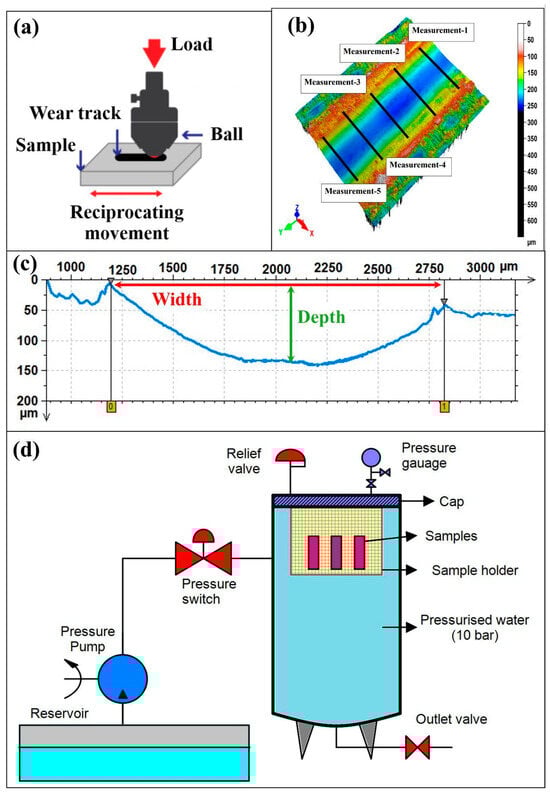 This study quantifies how pressurized water immersion alters the reciprocating sliding behavior of glass and Kevlar woven fabric-reinforced polymer hybrid composite laminates. Specimens were immersed in deionized water at 10 bar and 25 °C for 0, 7, 14, and 21 days, then tested