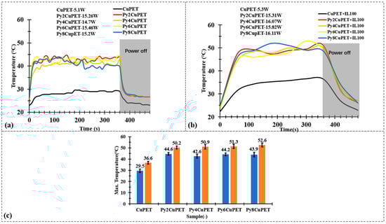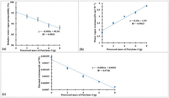 The development of electro-thermal textiles has attracted growing interest as a promising approach for active thermal management in wearable systems. Metallic-coated fabrics can efficiently generate heat through the Joule effect; however, their long-term performance and safety are severely limited under perspiration due to metal ion release and corrosion. To overcome these challenges, this study introduces a Parylene-C encapsulation strategy for copper-coated polyethylene terephthalate nonwovens (CuPET) using a chemical vapor deposition (CVD) process. The conformal, biocompatible Parylene-C films (thickness 4–16 μm) act as effective protective barriers while preserving the porous textile structure. Morphological and comfort analyses demonstrate a controlled reduction in air permeability from 3100 to 1100 L·m−2·s−1, maintaining acceptable breathability. Electro-thermal measurements reveal rapid and uniform heating, reaching 40–45 °C within 2 min at 2 V, and the addition of a thermal insulation layer further enhances the Joule heating efficiency, increasing the steady-state temperature by approximately 6 °C. ICP–OES results show an ≈80% reduction in copper ion release (from 28.34 mg·L−1 to 5.80 mg·L−1) after artificial sweat exposure. This work demonstrates a scalable encapsulation route that effectively balances sweat protection, electrical stability, and thermal performance, paving the way for safe, durable, and actively heated smart textiles for advanced thermal insulation applications.