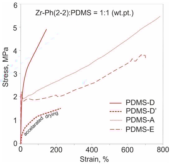 Investigation of Metallo(organo)siloxane—Polydimethylsiloxane Composites with a High Metallosiloxane Component Content