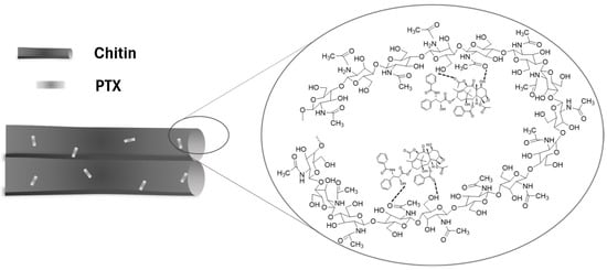 This study aims to investigate biodegradable and biocompatible chitin as a natural carrier for loading the hydrophobic anti-cancer drug paclitaxel (PTX) for the first time, resulting in a new loading system of chitin nanoparticles–paclitaxel (ChNps–PTX). The well-dispersed chitin nanoparticles (ChNps) and ChNps–PTX were
