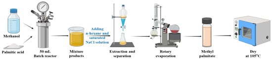 Biodiesel is a green, low-carbon, and renewable fuel with the potential to substitute fossil fuels. The effects of reaction temperature (175–290 °C), residence time (5–75 min), and molar ratio of methanol to palmitic acid (6:1–35:1) on the non-catalytic esterification of palmitic acid with