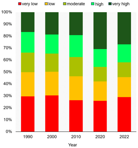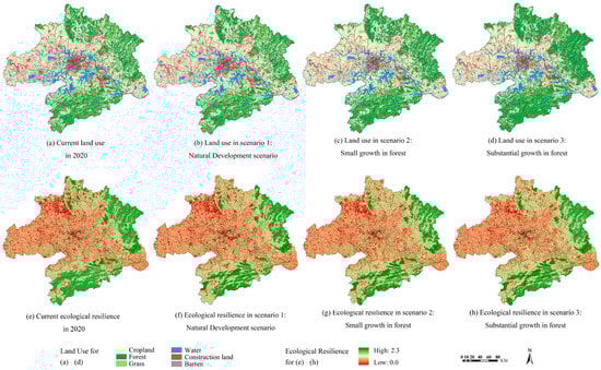 Environmental degradation from rapid urbanization significantly threatens ecological resilience (ER). Nevertheless, accurately evaluating ER remains a persistent challenge. Prior studies’ limited attention to resilience’s cross-scale complexity has hindered evidence-based management. This study, based on long-term time series remote sensing and multi-source data, developed a cross-scale spatiotemporal ER analysis framework integrating landscape ecology and panarchy perspectives. A local “resistance–adaptation–recovery” substrate resilience evaluation was combined with telecoupling-based global network resilience to quantify multi-scale ER from 2000 to 2020. Key drivers across time scales were identified using a hybrid XGBoost–SHAP and genetic algorithm (GA)–optimized dynamic Bayesian network (DBN), and spatial optimization scenarios were simulated with patch-generating land use simulation (PLUS) model. ER decreased slightly from 0.4856 in 2000 to 0.4503 in 2020, with dynamic fluctuations across periods. A clear spatial pattern emerged, with higher ER in the east and lower in the west. Forest land contributed strongly to ER, while construction and cropland reduced it. Spatial composition factors—especially the proportions of forest and construction land—were dominant drivers, outweighing structural factors such as landscape pattern. DBN backward inference revealed nonlinear threshold effects among socio–natural–spatial drivers. Scenario-based simulations confirmed that regulating spatial composition via our optimization pathway can enhance ER. This is particularly effective when expanding forestland in mountainous regions while restraining the growth of built-up areas. This study proposes an integrated framework of “resilience assessment—driver analysis—spatial optimization,” which not only advances the theoretical basis for nested ER assessment but also offers a transferable approach for optimizing spatial patterns and sustainable land management, thereby enhancing ecological resilience in rapidly urbanizing regions.