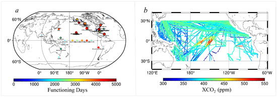 Atmospheric carbon dioxide in mole fraction (XCO2) is one of the key parameters in estimating CO2 fluxes at the air–sea interface. Satellite-derived column-averaged XCO2 has been widely used in the estimates of air–sea CO2 fluxes, yet the uncertainties