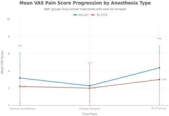 Background/Objectives: Thumb basal joint arthritis is a common degenerative condition often requiring surgery when conservative treatment fails. Dual mobility trapeziometacarpal prostheses are increasingly used, but the optimal anesthetic strategy remains debatable. This study aimed to explore whether WALANT provides intraoperative analgesia and