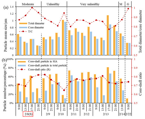 The COVID-19 pandemic emerging in early 2020 triggered global responses. In China, stringent lockdown measures were implemented to suppress the rapid spread of infection, resulting in substantial reductions in anthropogenic emissions. However, several atmospheric haze episodes still occurred. Previous studies have investigated the cause of these haze events predominantly based on the average concentration obtained from bulk analysis, while the micro-scale structure and composition of the haze particles remain poorly understood. In this study, we analyzed the morphology and elemental composition of individual airborne particles collected from an urban area of Beijing in early 2020 using high-resolution transmission electron microscopy equipped with Energy Dispersive X-ray Spectroscopy. The results show that sulfur-dominant, ultrafine, and mixed particles were the most abundant types during the pollution process. Reduced human activities corresponded with a lower percentage of anthropogenic-derived soot, organic particles, and metal-containing particles. Atmospheric aging analysis demonstrated that secondary aerosols were the most significant component during the haze events. The proportion of core–shell particles increased with the intensification of the pollution, while the core/shell ratio of the particles decreased, suggesting a substantial contribution of secondary aerosols to the haze formation. Despite reductions in anthropogenic emissions, larger proportions of secondary aerosol formation enhanced aerosol aging and thereby caused episodic haze pollution during the lockdown period.