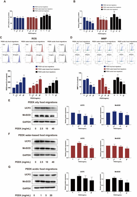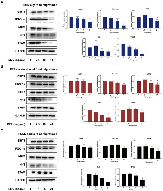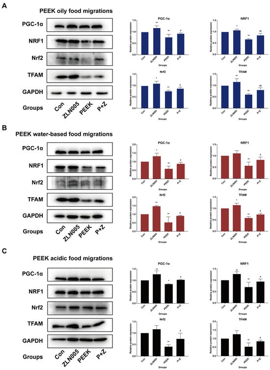 Effect of Food Migrations of PEEK-Modified Atmosphere Packaging Materials on Mitochondrial Damage via PGC-1α/Nrf2 Signaling Pathway