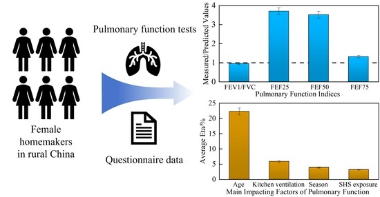 To understand the pulmonary function and main influencing factors of homemakers in rural Xi’an, a representative city in Northwest China, 72 housewives (61 ± 9 years old) were randomly selected from the rural area of Lantian, Xi’an. The questionnaire survey and pulmonary function
