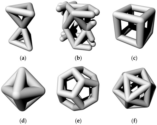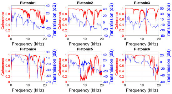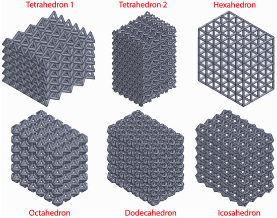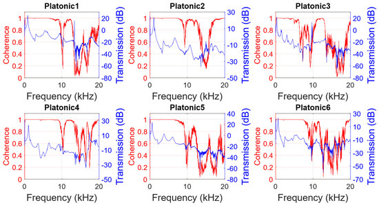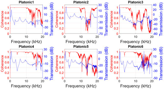 Vibration band gap structures are advanced materials for vibration wave mitigation from metamaterials to phononic crystals from simple geometrical manipulations. Here, we present geometrical structures, made from platonic solids, that are capable of providing multi-passband frequency ranges with face symmetry in each unit cell. We fabricated the metamaterial structures using stereolithography, after which we experimentally characterized band gaps through impulse vibration testing. Experimental results have shown that the band gaps can be changed for different types of platonic structures along with the loading direction. This provided a comparison between axial and two bending direction band gaps, revealing ranges where the structures behave in either a “fluid-like” or an “optical-like” manner. Dodecahedron unit cells have exhibited the most promising results, when compared with reduced relative densities and a number of stacking unit cells. We utilized the coherence function during signal processing analysis, which provided strong predictions for the band gap frequency ranges.