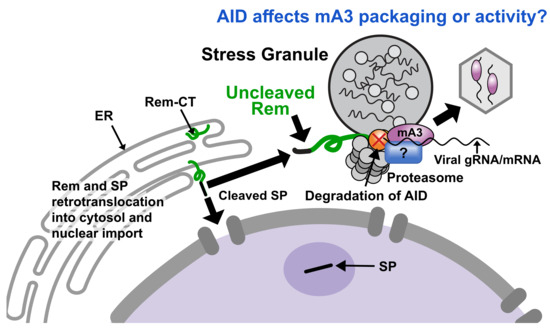 The APOBEC family of cytidine deaminases is part of the innate immune response to infections by multiple RNA- and DNA-containing viruses. Since the activity of these enzymes, typically APOBEC3, often involves mutations that inhibit or block viral replication, viruses have evolved antagonists that limit APOBEC function. The retrovirus mouse mammary tumor virus (MMTV) encodes an APOBEC antagonist, Rem. Surprisingly, Rem appears to inhibit APOBEC3 through proteasomal degradation of a different APOBEC enzyme, AID.
