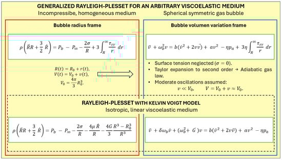 We present a novel formulation of the Rayleigh–Plesset equation to describe stable gas bubble dynamics in viscoelastic media, using bubble volume variation, rather than radius, as the primary variable of the resulting nonlinear ordinary differential equation. This formulation incorporates the linear Kelvin–Voigt model
