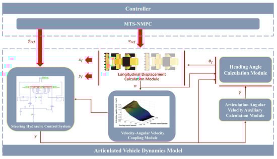 To enhance the path-tracking accuracy and control stability of articulated underground vehicles navigating high-curvature tunnels, this paper proposes a novel Multi-Time-Scale Nonlinear Model Predictive Control (MTS-NMPC) strategy. The core innovation lies in its dynamic adaptation of the prediction horizon to simultaneously compensate for