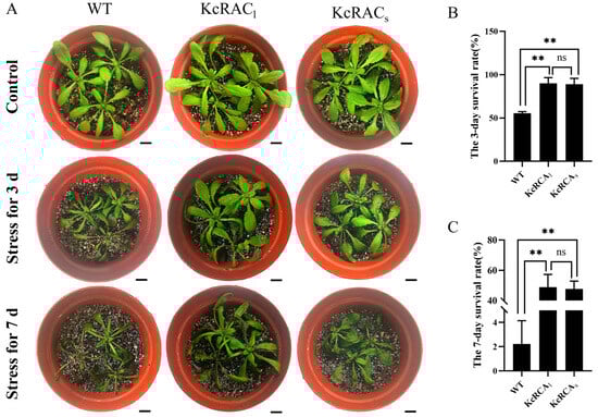 Rubisco activase (RCA) is an ATP-dependent enzyme that plays a crucial role in plant stress responses by regulating the catalytic activity of Rubisco. However, the alternative splicing and functional characteristics of the RCA gene exhibit notable species-specific diversity. The variable splice forms and functions of the RCA gene in mangrove plants remain poorly understood. Herein, we cloned the RCA cDNA in the leaves of mangrove plant Kandelia candel (L.) in response to combined flooding and salinity stress, and performed systematic expression analysis and functional validation. Our results demonstrated that the RCA gene undergoes alternative splicing to produce two isoforms, designated as KcRCAl (GenBank accession: MG492021) and KcRCAs (GenBank accession: MG492022), respectively. The KcRCAl encodes a 440-amino acid protein (42.49 kDa) belonging to the β-isoforms, while KcRCAs encodes a 474-amino acid protein (46.10 kDa) classified as the α-isoforms. Moreover, protein structure analysis revealed that both isoforms contain phosphorylation and lysine acetylation modification sites. Phylogenetic analysis indicated that KcRCA shares the closest evolutionary relationship with RCA from Cicer arietinum (chickpea) and Durio zibethinus (durian). Furthermore, RT-qPCR analysis revealed that the expression levels of KcRCAl and KcRCAs were significantly upregulated in K. Candel leaves under the combined stress condition. The following functional validation studies in transgenic Arabidopsis demonstrated that overexpression of the KcRCA cDNA enhances the plant’s tolerance to resist flooding and salinity stress while improving antioxidant capacity and increasing RCA and Rubisco activity, thereby maintaining photosynthetic efficiency under combined flooding and salinity stress. Our study not only provides new experimental evidence for understanding the molecular mechanisms of plant flooding and salinity stress, but also offers theoretical foundations for breeding flooding- and salinity-tolerant crops.