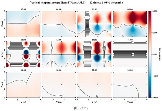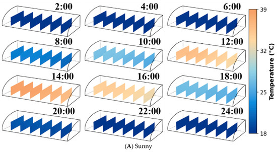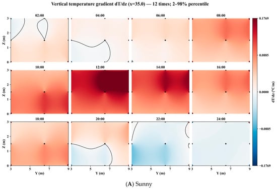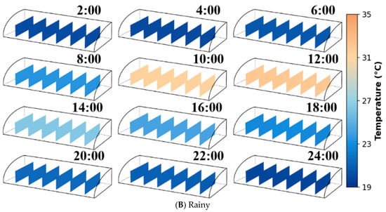 This paper presents a proposed LSTM-based vertical-gradient prediction combined with three-dimensional kriging that enables reconstruction of greenhouse 3D temperature fields under sparse-sensor deployments while capturing temporal dynamics and spatial correlations. In northern China, winter solar greenhouses rely on standardized structures and passive climate-control strategies, which often lead to non-uniform thermal conditions that complicate precise regulation. To address this challenge, 24 sensors were deployed, and their time-series data were used to train a long short-term memory (LSTM) model for vertical temperature-gradient prediction. The predicted values at multiple heights were fused with in situ observations, and three-dimensional ordinary kriging (3D-OK) was applied to reconstruct the spatiotemporal temperature field. Compared with conventional 2D monitoring and computationally intensive CFD, the proposed approach balances accuracy, efficiency, and deployability. LSTM–Kriging validation showed Trend + Residual Kriging had the lowest RMSE (0.45558 °C) and bias (−0.03148 °C) (p < 0.01), outperforming Trend-only RMSE (3.59 °C) and Kriging-only RMSE (0.48 °C); the 3D model effectively distinguished sunny and rainy dynamics. This cost-effective framework balances accuracy, efficiency, and deployability, overcoming limitations of 2D monitoring and CFD. It provides critical support for adaptive greenhouse climate regulation and digital-twin development, directly advancing precision management and yield stability in CEA.