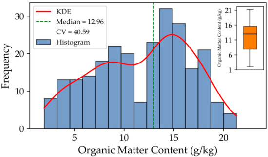 The fusion of Raman and visible–near-infrared (VIS–NIR) spectroscopy provides a promising pathway for rapid and non-destructive soil analysis. However, conventional fusion strategies often fail to properly balance modality discrepancies and complementary information. To address this limitation, this study develops an adaptive Gated Ridge Regression fusion model (Fusion_GatedRidge) for predicting soil organic matter (SOM). A total of 246 soil samples collected from a dryland agricultural region in Shanxi Province were analyzed using laboratory Raman and VIS–NIR spectroscopy. After standard preprocessing, three baseline fusion frameworks—EarlyFusion_Ridge, AE_LatentFusion, and WeightedLate_Fusion—were implemented for comparison with the proposed gated fusion method. Under fivefold cross-validation, Fusion_GatedRidge achieved the best performance, with an R2 of 0.83, RMSE of 2.01 g·kg−1, and RPD of 2.39. Compared with single-modality models, R2 increased by up to 18.6% and RMSE decreased by up to 23.0%. The gating mechanism dynamically adjusted the contributions of Raman and VIS–NIR features, leading to more stable predictions with residuals largely within −2 to 2 g·kg−1. Overall, the proposed model demonstrates that adaptive modality weighting enhances the exploitation of complementary spectral information and significantly improves SOM prediction accuracy. These findings offer a concise and effective multimodal fusion framework for laboratory-based soil nutrient assessment.