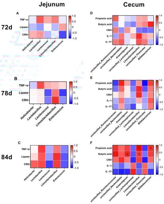This study aimed to investigate the temporal dynamics of physiological and gut microbial responses in Mule ducks (M-D) during force-feeding (F-F), with the goal of identifying potential regulatory targets to reduce feeding stress. Male M-Ds were subjected to either F-F or ad libitum feeding. We conducted longitudinal analysis at 72, 78, and 84 days of age to assess growth performance, serum biochemical profiles, and intestinal inflammatory markers, while assessing gut microbiota composition through 16S rDNA sequencing. The F-F group exhibited superior growth performance. Initial physiological responses at day 72 included significantly reduced serum corticotropin-releasing hormone (CRH) and jejunal tumor necrosis factor-alpha (TNF−α). Conversely, F-F induced a persistent and profound alteration in the gut microbiome by day 84, characterized by reduced alpha diversity and a significant enrichment of the genus Limosilactobacillus. Correlation analysis identified Limosilactobacillus as a keystone taxon, strongly associated with intestinal metabolites. Our findings demonstrate that M-Ds undergo time-dependent metabolic and immunological adaptations in response to F-F stress, which correlates with distinct alterations in gut microbiota composition, particularly the enrichment of Limosilactobacillus. These findings provide a theoretical basis for developing microbiota-targeted strategies to alleviate F-F stress in foie gras production.