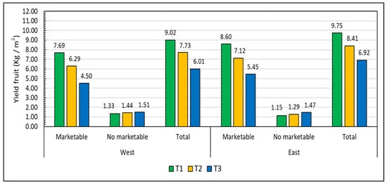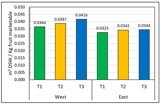 Water scarcity in arid and semi-arid regions increasingly stresses groundwater resources, compromising their availability and quality. In this context, desalinated seawater (DSW) represents a sustainable alternative when combined with conventional water sources and efficient irrigation systems. This study assessed the effect of three irrigation treatments on greenhouse-grown tomato crops in an open hydroponic system. The treatment T1 used only DSW, while T2 and T3 were mixtures of DSW and groundwater in different proportions to achieve electrical conductivities (EC) of 2.5 (T1), 3.5 (T2), and 5.5 dS·m−1 (T3), respectively. Each treatment received the same fertilization level through fertigation, adjusted to the crop’s nutritional needs. Experiments were conducted in duplicate in two greenhouse sectors (West and East). The data on yield, fruit quality, fertilizer use, and water consumption were analyzed. Results indicated that higher EC reduced marketable and total yield, decreased fertilizer use efficiency, and increased the combined cost of water and nutrients per unit of marketable fruit. Additionally, higher EC affected fruit weight and diameter, increased soluble solids, and altered dry matter content. These findings demonstrate that DSW can be an effective and environmentally sustainable irrigation strategy for greenhouse crops.